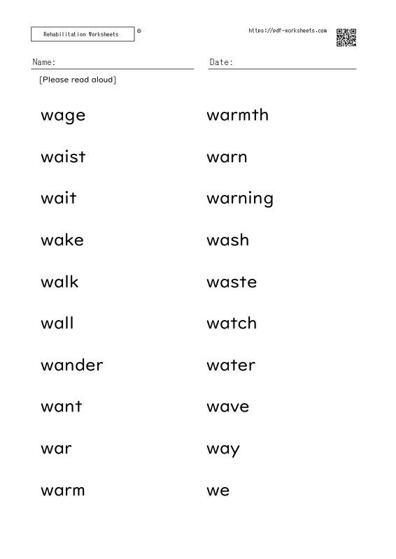 Articulation Exercises WorksheetsWord reading aloud task “W” (5 sheets)