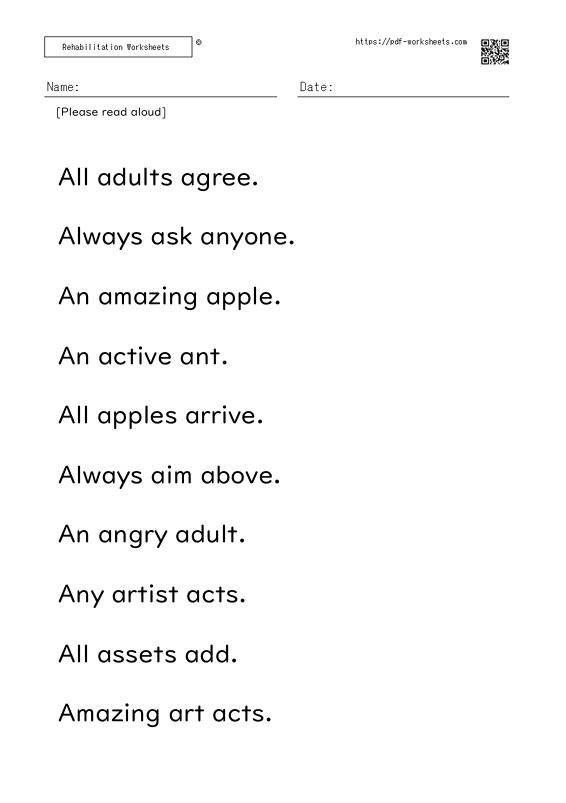 - Reading aloud task two-word sentence A (10 sheets)